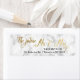 Uma simples e elegante etiqueta de volta de mármore para o futuro Sr. e Sra. em bela tipografia de guiões de ouro. Etiquetas de endereço de retorno elegantes para uso em casamentos, chás de panela ou qualquer outro envio antes do seu casamento.