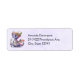 Etiquetas de endereço com uma ilustração de um dragão mítico. Escalas púrpura e azul. Uma coroa dourada florida com chifres enfeita sua cabeça. Magia, divertida e amigável.