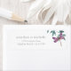 Este design de etiqueta de endereço apresenta uma bela libélula de aquarela com asas em tons de roxo e rosa. Baseia-se numa simples disposição de verde natural para jardins de aquarelas, em tons de verde e azul, sobre fundo branco.