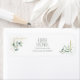 Arranjos elegantes e inspirados na natureza, incluindo goma azul eucalipto com esboços de folhas de ouro e ouro junto com layouts únicos de design, fazem disso um maravilhoso jogo de casamento para qualquer época do ano. A etiqueta de endereço de retorno de casamento mostrada aqui contém bordas de canto de folhagem, quadros de canto dourado e os nomes e endereços da noiva e do noivo. Veja o link de coleção nesta página para ver todos os itens correspondentes neste belo design ou ID817 de pesquisa para ver outras peças e opções de cor para este conjunto.