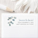 Nomes Botânicos Azuis Dusty Devolvem a etiqueta de casamento do endereço. Um design contemporâneo minimalista com um motivo botânico Dusty Blue Watercolor. Personalize facilmente com seus nomes e retorne seu endereço. Altere o texto e a cor do plano de fundo se quiser combinar o seu próprio tema de cor de casamento através da opção Editar mais.