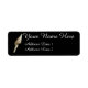 Fotografia de uma concha em forma de espiral branca com linhas douradas, sobre fundo preto. Copyright ©Kimberly J Tilley. Personalize este rótulo de endereço de concha com suas informações de correspondência.