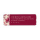 This elegant return address label features a sophisticated maroon background paired with an intricate floral pattern on the left side, showcasing lush pink roses and red flowers. The design combines modern digital illustration techniques with classic botanical elements, creating a timeless aesthetic. Clean serif typography is used for the customizable text, ensuring clarity and refinement. Perfect for formal invitations or significant announcements, this label exudes elegance and formality, making it ideal for special occasions.