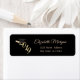 Elegante etiqueta de endereço de retorno de formatura com boina de formatura em fundo preto.