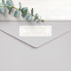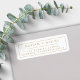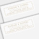 Elegante e simples carimbo de endereço de devolução de casamento, em um design minimalista moderno, apresentando o nome da noiva e do noivo em tipografia serifada estilosa com uma borda elegante, combinado com um texto de endereço de envio personalizável em uma fonte da moda para um sentimento sofisticado e chique em dourado e branco clássicos.