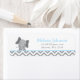 Um elefante fofo e uma etiqueta de endereço de retorno de chevron.