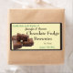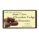 Uma pilha de quatro brownies de chocolate é colocada no canto inferior esquerdo desta etiqueta, com um fundo amarelo pálido, rodeado por uma fronteira e fundo de castanho muito escuro, o que torna esta etiqueta perfeita para usar nos nossos brownies cozidos domésticos para dar presentes ou vender nos mercados dos agricultores. O texto está na forma de modelo para que você possa mudá-lo para o que quiser.