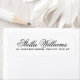 Etiquetas de endereço de retorno simples, mas elegantes, com seu nome em uma fonte elegante de script de caligrafia e o endereço abaixo. Você pode alterar a cor do plano de fundo e da fonte para qualquer cor personalizada com a ferramenta de personalização.