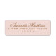 Etiquetas de endereço de devolução rosa cor-de-rosa com o seu nome em uma fonte de caligrafia elegante e o endereço abaixo