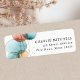 Lindas etiquetas de endereço de retorno com uma pintura aquosa de formas e linhas de abstrato em tons azuis, cor-de-rosa e terracotta, com seu endereço de retorno em uma fonte serif elegante posicionada à direita.