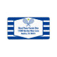 Esta etiqueta de endereço de retorno do clube moderno de país apresenta raquetes de tênis e uma bola acima do nome da equipe de tênis e data estabelecida. Etiquetas de envio em faixas azuis e brancas para seus jogadores tênis e membros do clube country.