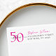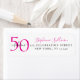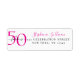 Etiqueta de endereço de devolução de aniversário de 50 anos moderna e minimalista em rosa e preto que você pode personalizar e enviar para a celebração do seu aniversário de cinquenta anos. As palavras "Cinquenta e Fabuloso" são definidas usando tipografia de fonte negrito em tendência. As cores do texto podem ser alteradas usando o menu de edição.
