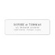 Este clássico endereço de retorno do casamento, que é moderno, mostra os nomes do casal do casamento e o endereço em preto contra uma cor branca de fundo. Personalize-o substituindo o texto do marcador de posição. Para obter mais opções, como alterar a fonte, seu tamanho e espaçamento entre letras, clique no botão "Personalizar". *Observe que a Marca d'água do Zazzle que aparece na visualização de zoom NÃO aparecerá no produto impresso final. © Rosewood e Citrus