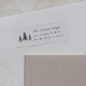 Aumente sua correspondência de feriado com essas etiquetas minimalistas de endereço preto e branco de retorno da coleção Simple Wish da Redwood & Vine Design Co. Apresentando ilustrações simples em árvore e tipografia moderna, este design subestimado é perfeito para emparelhamento com cartões de Natal, envelopes e artigos de papelaria sazonais. Uma escolha refinada para famílias que preferem um olhar limpo e elegante para as férias.