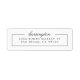 Etiqueta de endereço de retorno de estilo minimalista personalizado com o nome da sua família num script de caligrafia e os detalhes do seu endereço de retorno (número da casa, rua, cidade, estado, código ZIP) em uma simples tipografia serif. Saia quando enviar convites, ou qualquer tipo de correio!