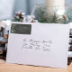 Crie um elegante endereço de volta de Natal, com um elegante modelo de feriado, um nome de família moderno, com etiquetas na moda, verde rústico e cinzas, com um inverno informal casual, uma simples tipografia, um estilo mínimo limpo, com uma ilustração contemporânea em floco de neve