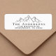 Rótulo de endereço de retorno com ilustração das montanhas e seu nome e endereço da família em uma simples tipografia moderna.