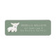 Rótulo de endereço de retorno bonito, com ilustração de uma ovelha bebê que se deita com um sorriso doce no rosto. Este rótulo foi projetado para um pequeno chá de fraldas de tema de cordeiro.