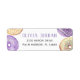 Projetados para corresponder à nossa coleção de convidados e artigos de papelaria de eventos, estas etiquetas de endereços de retorno bonitinhas apresentam letras roxas e cinzas com ilustrações de rosquinha de aspersão de cor d'água em marfim e roxo.