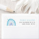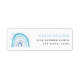 Rótulo de endereço de retorno bonito e moderno com ilustração desenhada manualmente de um arco-íris azul com estrelas. Esta design corresponde à coleção de chás de fraldas com o mesmo design arco-íris.