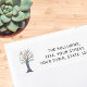 Esta etiqueta de endereço de retorno é decorada com uma árvore colorida. Facilmente personalizável. Mosaico original © Michele Davies.