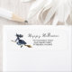 Watercolor Witch Halloween Return Address Label apresenta uma bruxa vintage voando sobre sua vassoura, roteiro e tipografia moderna. Rótulos "Feliz Dia das Bruxas" em tipografia de script. Todo texto e fontes são comestíveis.