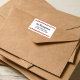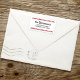 Esta design apresenta um endereço de volta de Natal, com um selo branco, vermelho, moderno, minimalista, informal, com uma simples e simples tipografia fofa, faixas de canas doces, diversão festiva, estilo de feriado chic, coincidem com os boletins do dia do polo norte.