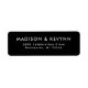 Etiqueta de endereço de retorno do Casamento Branco Elegante com um boné preto e o nome e endereço do casamento no moderno .