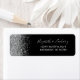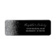 A borda esquerda desta elegante e moderna etiqueta de endereço de volta do casamento apresenta um design de cintilação falsa prateada. O texto personalizável combina a escrita manual de cinzas prateadas, fontes copperplate e itálico em um fundo preto.