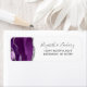 A borda esquerda desta elegante e moderna etiqueta de endereço de retorno de convite de casamento apresenta uma cor d'água púrpura e borda agitada com falso brilho prateado. O texto personalizável combina a escrita manual de cinzas de carvão e as fontes de impressão em um fundo branco.