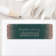 As bordas desta elegante e moderna etiqueta de endereço de retorno de casamento apresentam um rosa dourado faux glitter design. O texto personalizável combina a letra rosa-rosa pálida e as fontes em um fundo verde-escuro.