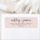 Chic, moderna e simples etiqueta de endereço de retorno de casamento com seus nomes em uma caligrafia elegante de escrita manual, fora de preto, em um fundo rosa pastel. Basta adicionar seus nomes e endereços. Desenvolvido exclusivamente para você pelo Happy Dolphin Studio. Se precisar de ajuda ou produtos correspondentes, entre em contato conosco em happydolphinstudio@outlook.com. Estamos felizes em ajudá-lo a fazer seu casamento o dia mais bonito!