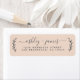 Chic, moderna e simples etiqueta de endereço de retorno de casamento com seus nomes em uma caligrafia elegante elegante e escrivaninha com um toque na moda de folhagem rústica em um fundo cor-de-rosa pastel de pêssego. Basta adicionar seus nomes e endereços. Desenvolvido exclusivamente para você pelo Happy Dolphin Studio. Se precisar de ajuda ou produtos correspondentes, entre em contato conosco em happydolphinstudio@outlook.com. Estamos felizes em ajudá-lo a fazer seu casamento o dia mais bonito!
