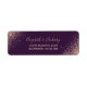 Esta elegante e moderna etiqueta de endereço de retorno de casamento contém um rosa dourado faux glitter design, organizado diagonalmente em dois cantos. O texto personalizável combina a letra rosa-rosa pálida e as fontes de impressão em um fundo roxo escuro.