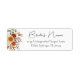 Etiquetas de endereço de devolução de convite de chuveiro de noiva floral de terracota de outono.