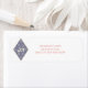 Adicione um toque festivo ao seu correio de férias com esta etiqueta de endereço de volta de feriado de Joy. O design apresenta um emblema em forma de diamante marinho com a palavra "Alegria" cercada por flocos de neve brancos delicados, aliada ao seu endereço de retorno personalizado em texto vermelho. Perfeito para cartões de Natal, convites para festas de férias e correspondência sazonal.