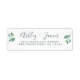 Chic, moderna e simples etiqueta de endereço de retorno de casamento com seus nomes em uma caligrafia elegante de guião fora do preto, escrita manual, em um fundo branco com um toque de na moda de folhagem verde de eucalipto. Basta adicionar seus nomes e endereços. Desenvolvido exclusivamente para você pelo Happy Dolphin Studio. Se precisar de ajuda ou produtos correspondentes, entre em contato conosco em happydolphinstudio@outlook.com. Estamos felizes em ajudá-lo a fazer seu casamento o dia mais bonito!