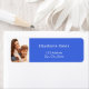 Etiqueta Endereço de devolução de foto azul real para casam