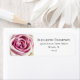 Uma etiqueta elegante de endereço de retorno com uma foto de uma rosa rosa rosa e seu nome e endereço em uma simples tipografia de cinza escura.