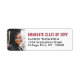 Adicione um toque personalizado de na moda a anúncios de graduação em universidades ou segundos graus e convites com essas etiquetas personalizadas de endereço de retorno vermelho, preto e branco. Design destes autocolantes apresenta uma imagem da sua escolha e do seu simples ano moderno de aula de tipografia minimalista, nome e endereço de retorno. Faz uma elegante adição aos convites e agradece as notas.