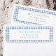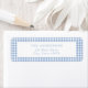 Crie suas próprias etiquetas de endereço de devolução personalizadas para cartões de Natal com tipografia minimalista personalizada em um padrão de xadrez de gingham azul giro.