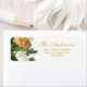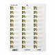 Etiquetas de Natal modernas, com fundo branco de neve, árvore de natal festiva, decorações brancas e douradas e luzes cintilantes de cordas.