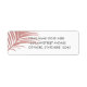 Rosa dourado pincelado, palmeira moderna cor-de-rosa (também parece uma pena) etiqueta de endereço de retorno, perfeita para casamentos de praia ou casamentos de destino tropical. Super fofo com o convite de passaporte, o convite de embarque e outros convites de casamento de destino. — Clique em PERSONALIZAR MAIS para alterar o plano de fundo para qualquer cor que você quiser ou selecione uma nova fonte.—