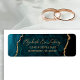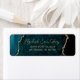 Esta elegante e moderna etiqueta de endereço de retorno de convite para casamento apresenta uma cor azul lacrimogênea de cor azul lacrimogênea de fundo, aparada com brilho dourado falso. O texto personalizável combina o script de escrita manual dourada e as fontes de impressão em papel.