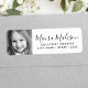 Etiquetas de endereço de retorno elegantes que contêm os campos de foto e modelo personalizados para nome e endereço. Nome ou nome da família em uma fonte elegante de script de caligrafia. Certifique-se de que a foto cobrir a área de hemorragia se você não estiver usando uma foto quadrada.