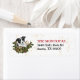 Estas etiquetas de endereço de retorno de Férias têm uma imagem de um adorável cachorrinho de Border Collie sentado em uma cesta de wicker. A cesta é enfeitada com folhas verdes e bagas vermelhas. Seu texto personalizado está em vermelho e preto à direita. Uma camada sutil de confete de ouro dá interesse ao fundo.