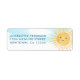 Esta etiqueta de endereço de retorno de chá de fraldas é decorada com um sol sorridente de aquarela e um fundo azul do céu. Facilmente personalizável. Original Watercolor © Michele Davies.