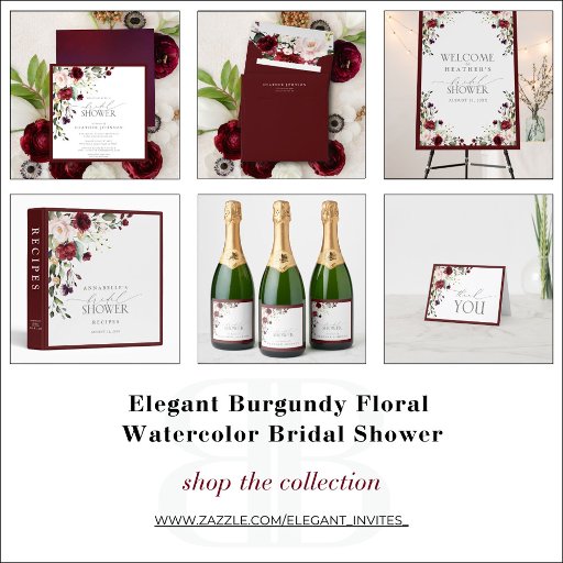 Elegant Burgundy Floral Watercolor Bridal ShowerCriado por ANASTASIA SURRIDGE, Creative Director