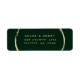 Esta etiqueta de endereço de retorno apresenta uma imagem falsa em círculo dourado e uma caligrafia simples com um fundo verde da floresta.