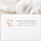 As etiquetas de endereço de retorno chic Zen contêm uma elegante cinza carvânica com uma ilustração de folha aquática clara de koi cor de laranja e primavera verde. Projetado para coordenar com nossa coleção de casamento Koi Pond.